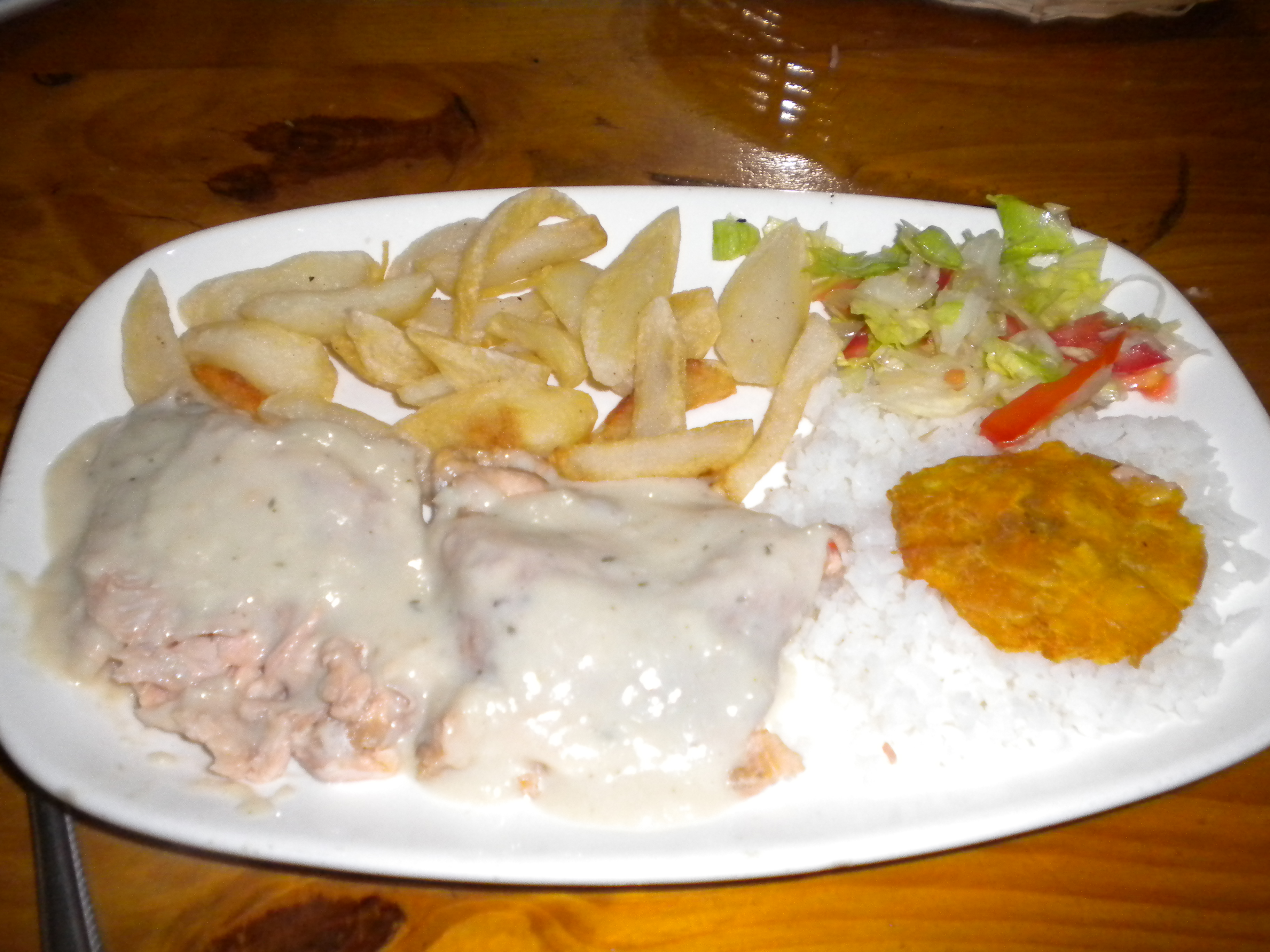Upon reuniting, taking the boat back to town and finding the maloca still unattended, we succumbed to our more earthly appetites and stuffed ourselves stupid with the local delicacy, trout – plus one or two steaming mugs of hervidos. Divine.